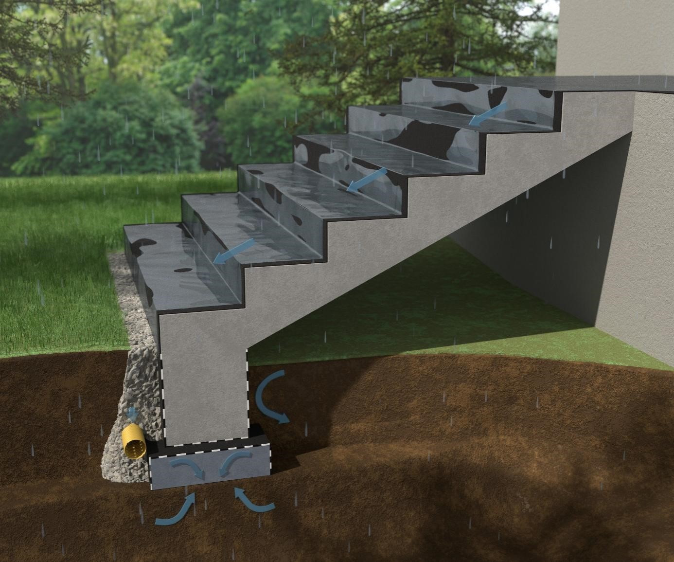 a) wodą opadową – warstwa hydroizolacji na stopnicach i podstopnicach