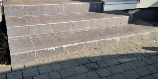 Odspajanie się płyt od podłoża lub wykwity solne na najniższym stopniu schodów tuż przy gruncie