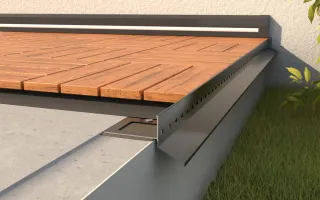 GRAND W60 WOODEN DECKING is a trimming system from Renoplast, designed for terrace, patio and balcony areas surfaced with composite or wooden decking laid on aluminium joists.