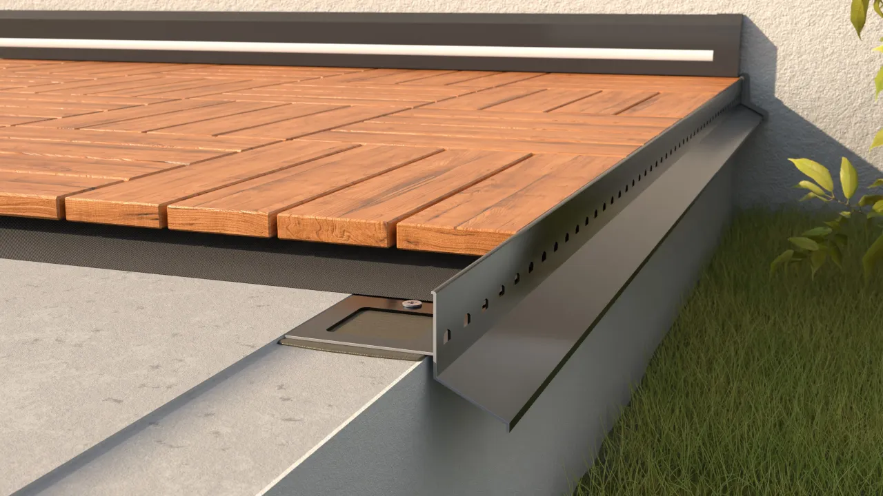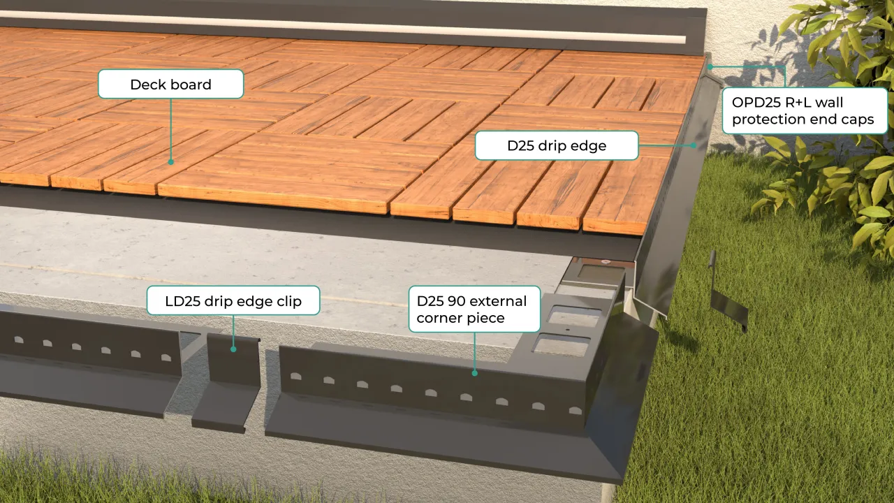 MULTI D25 DECK BOARDING SYSTEM is a trimming system from Renoplast, designed for terrace, patio and balcony areas surfaced with 2.5 cm thick composite deck tiles.