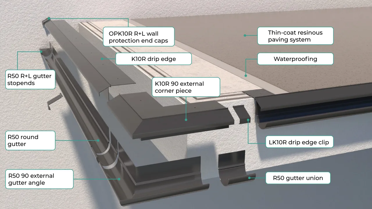 Provides a complete terrace/ balcony edge treatment system.