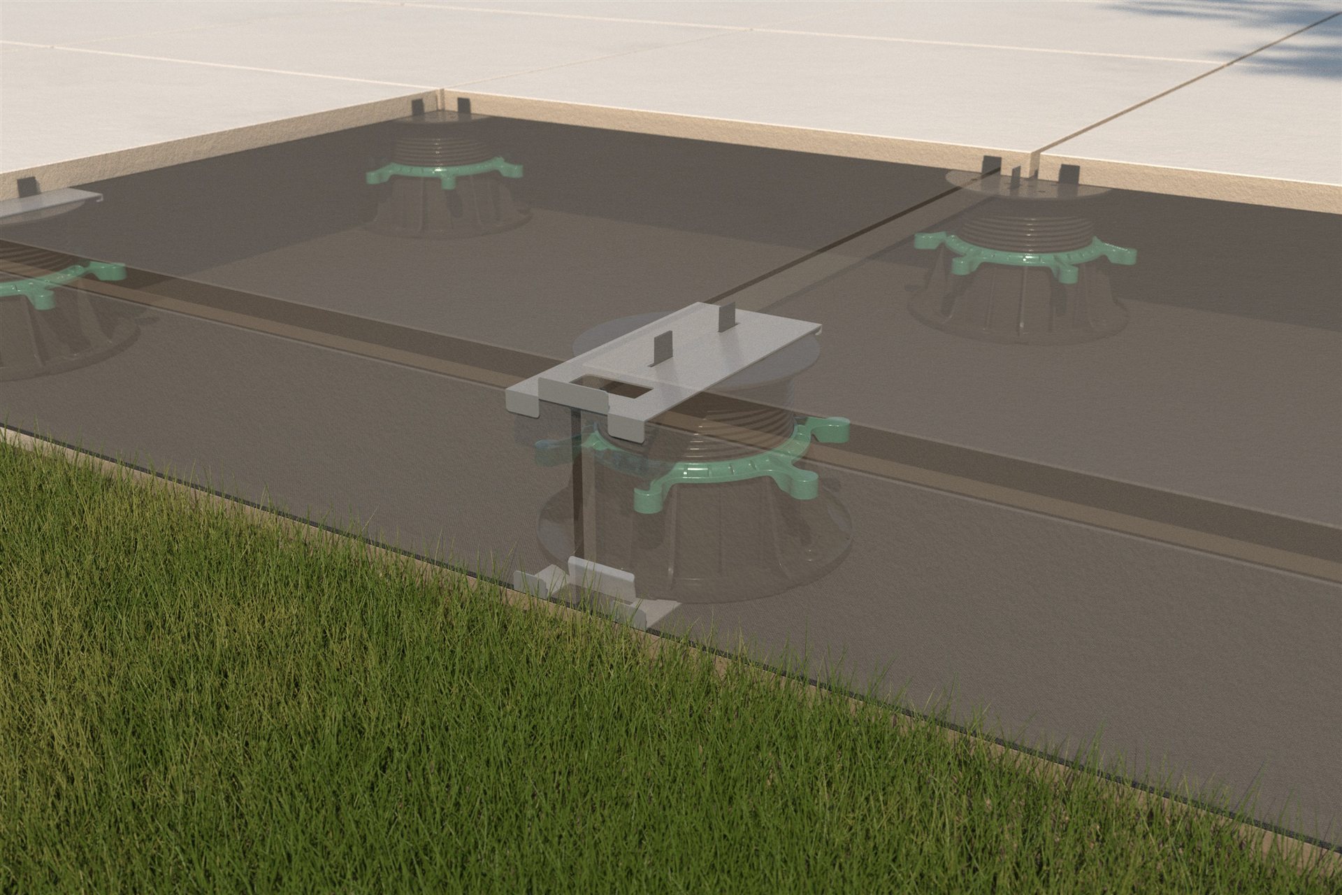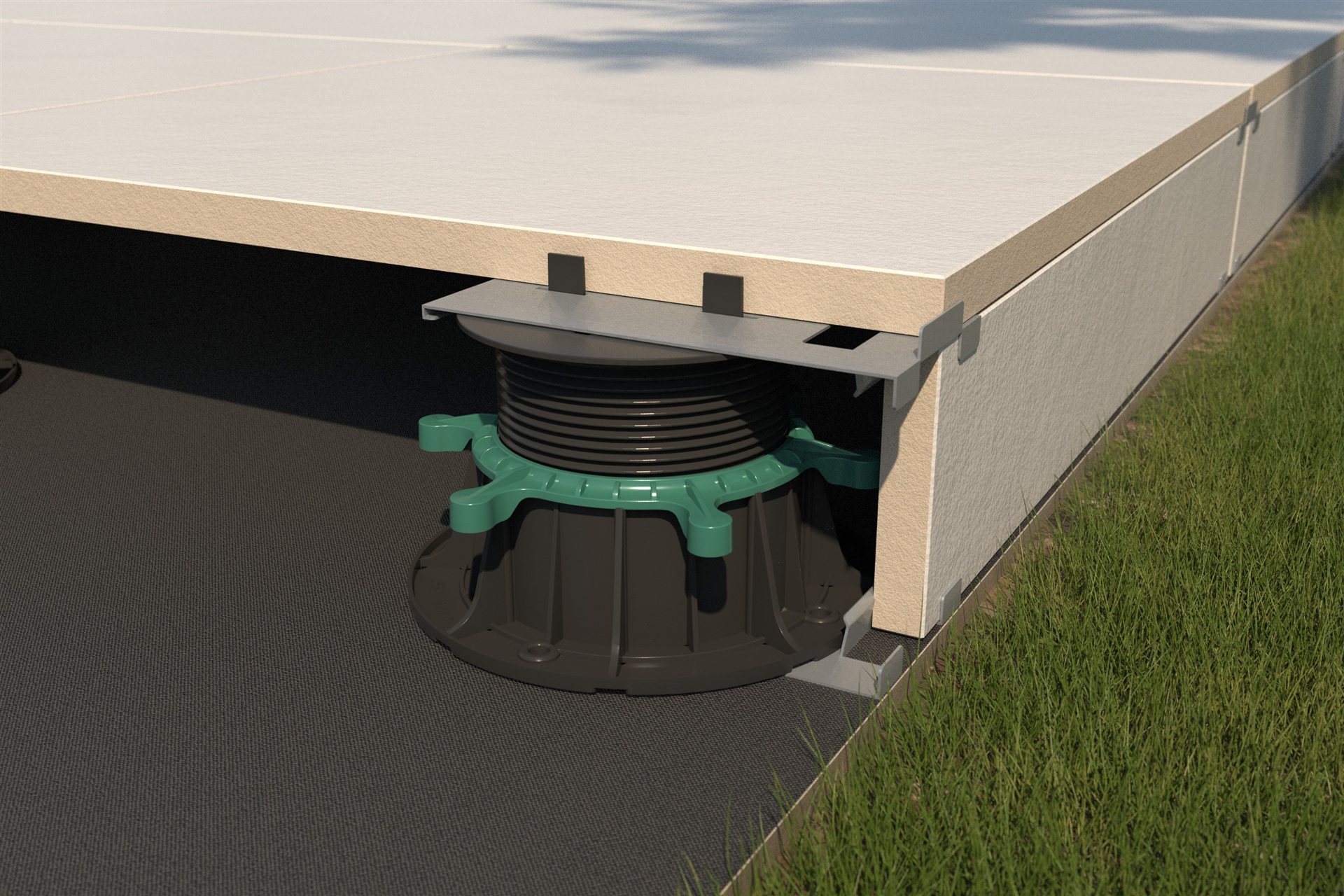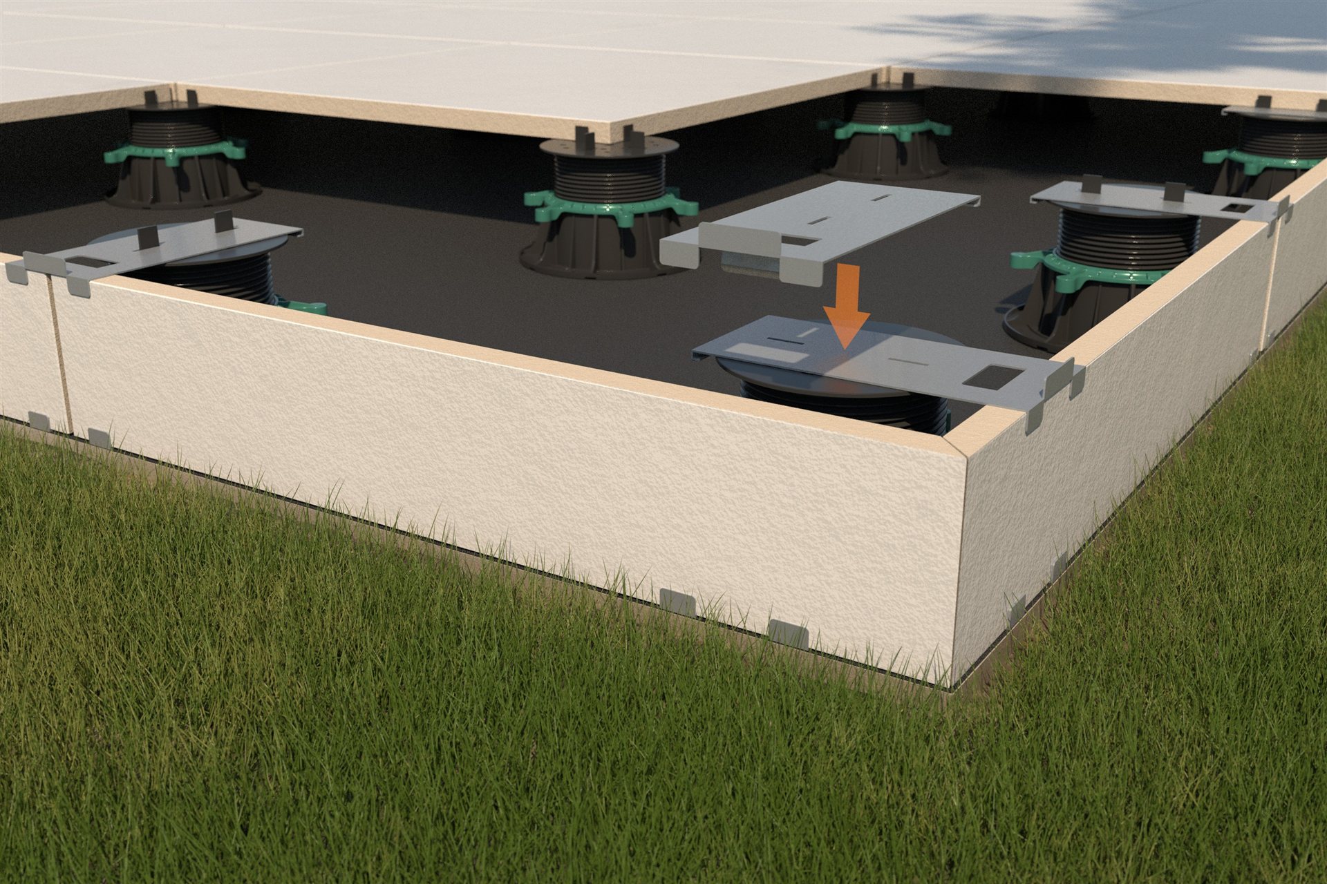 Zestaw klipsów mocujących RENOPAD PRO (górny i dolny) umożliwia zamocowanie płyt czołowych posadzki tarasu.