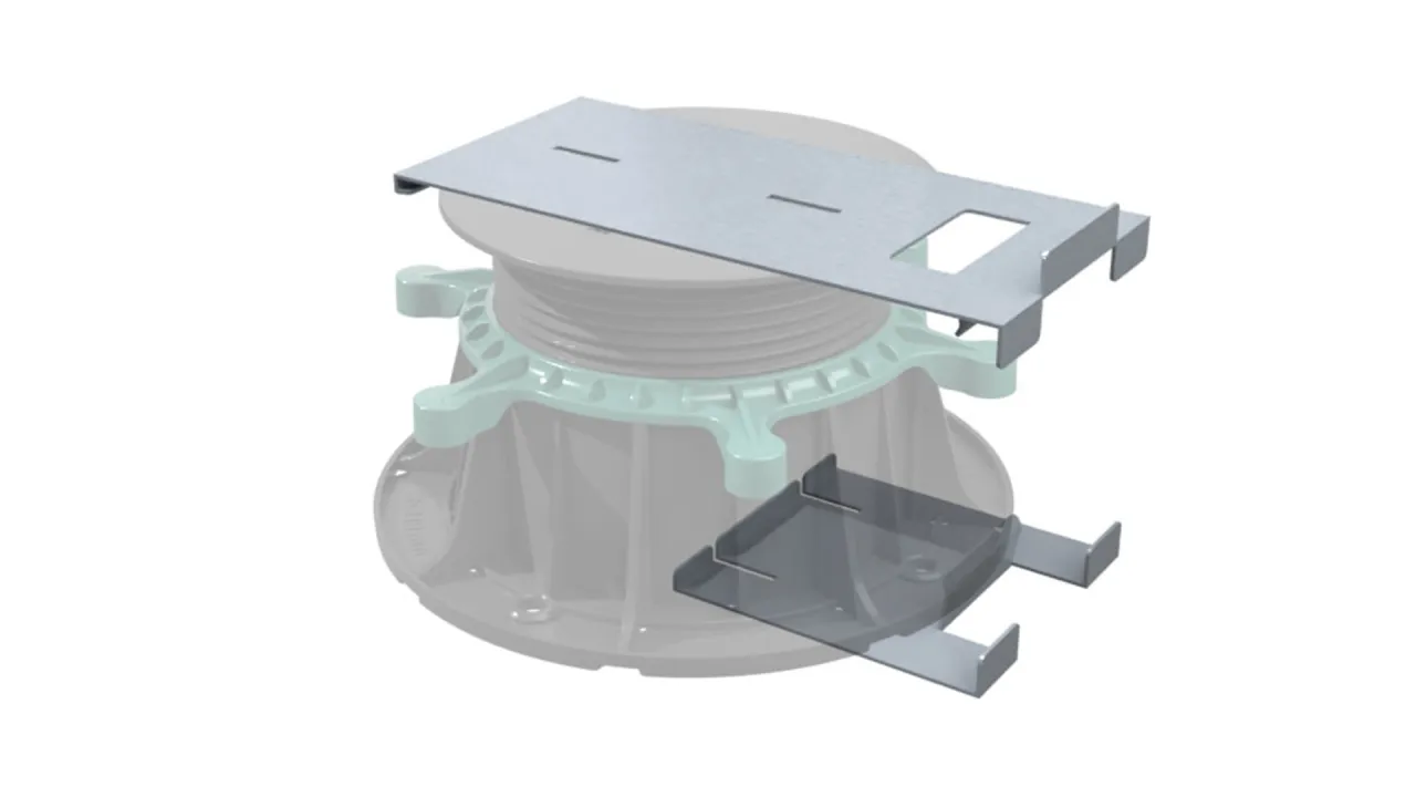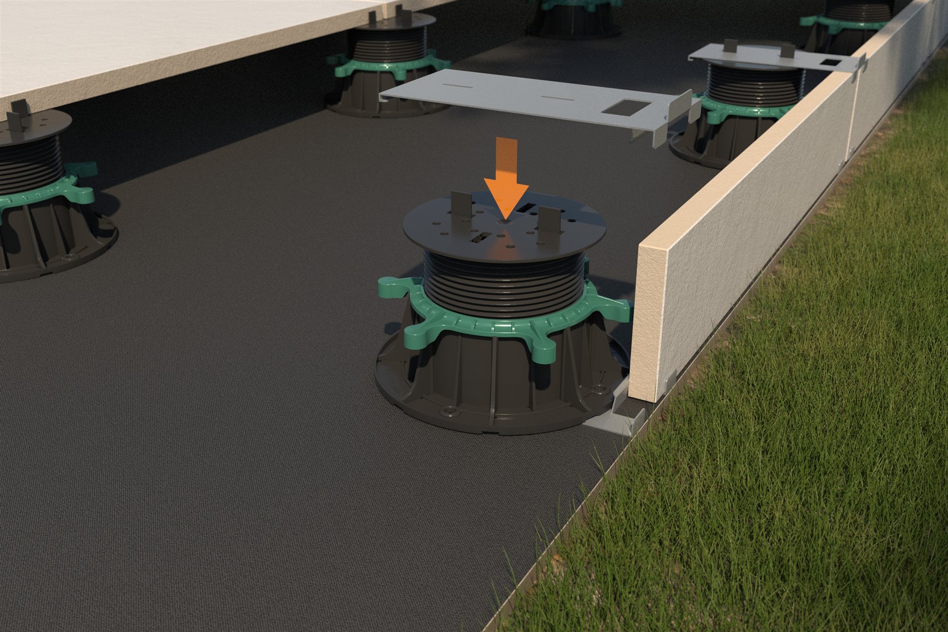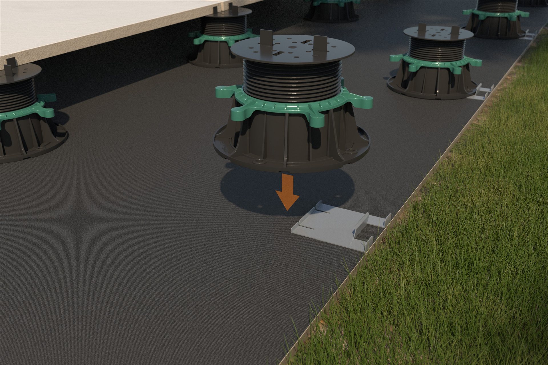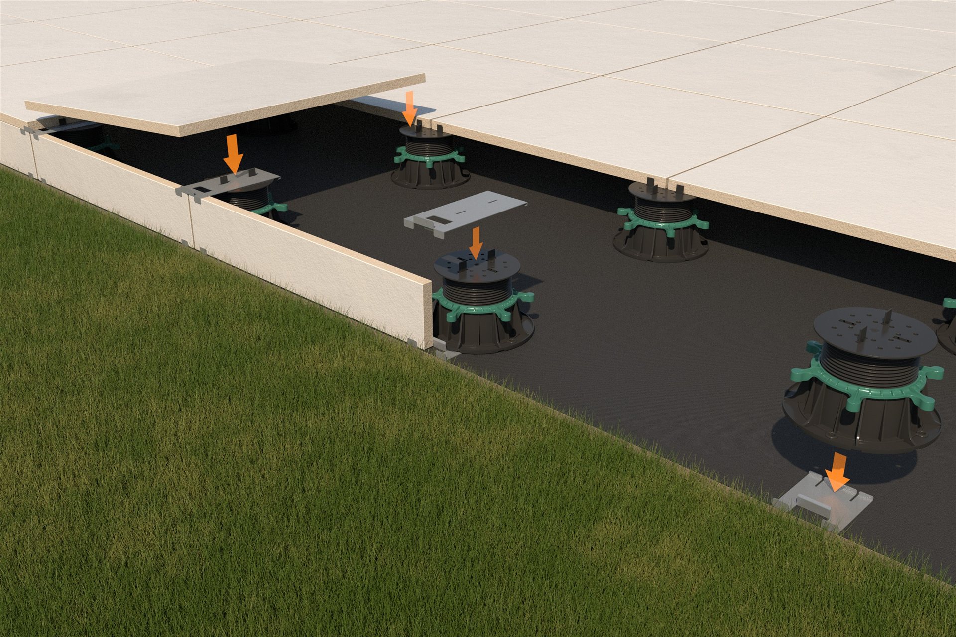 Zestaw klipsów mocujących RENOPAD PRO (górny i dolny) umożliwia zamocowanie płyt czołowych posadzki tarasu.