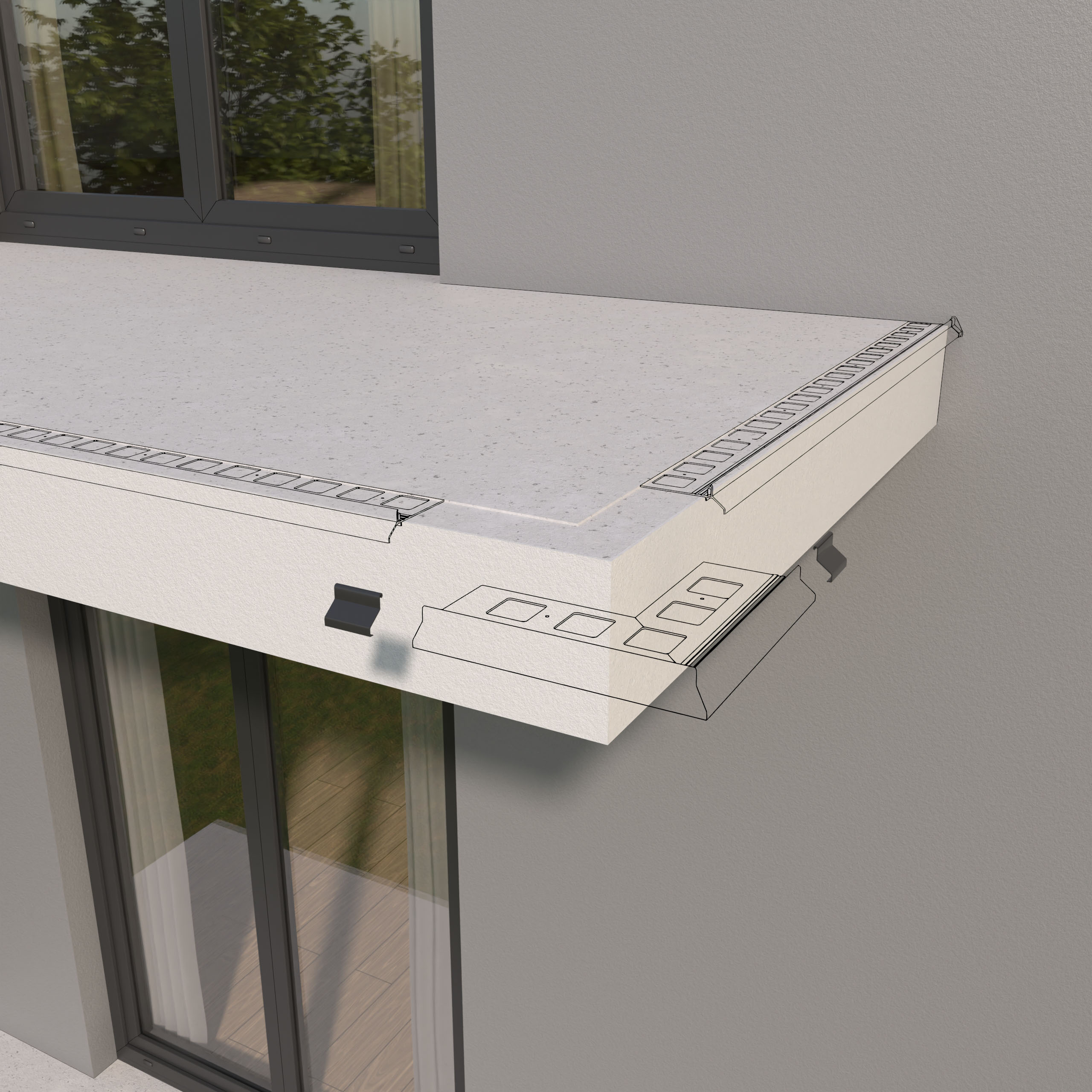 Łącznik LK30/LK40 jest elementem systemowego wykonania okapu profilami K30 i K40, który służy do łączenia między sobą profili prostych oraz profili z narożnikami.
