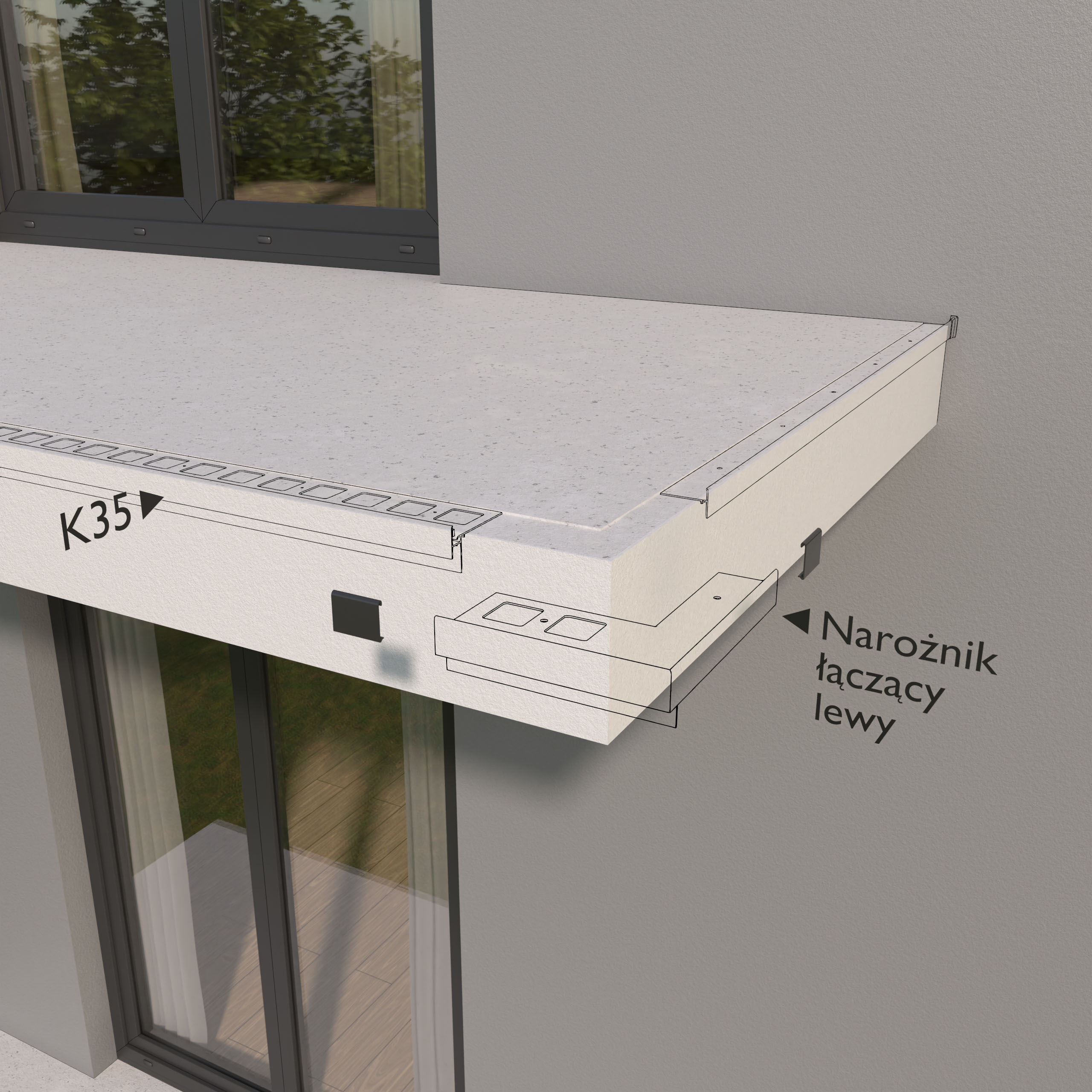 Narożnik zewnętrzny łączący K35/K35B 90 LEWY