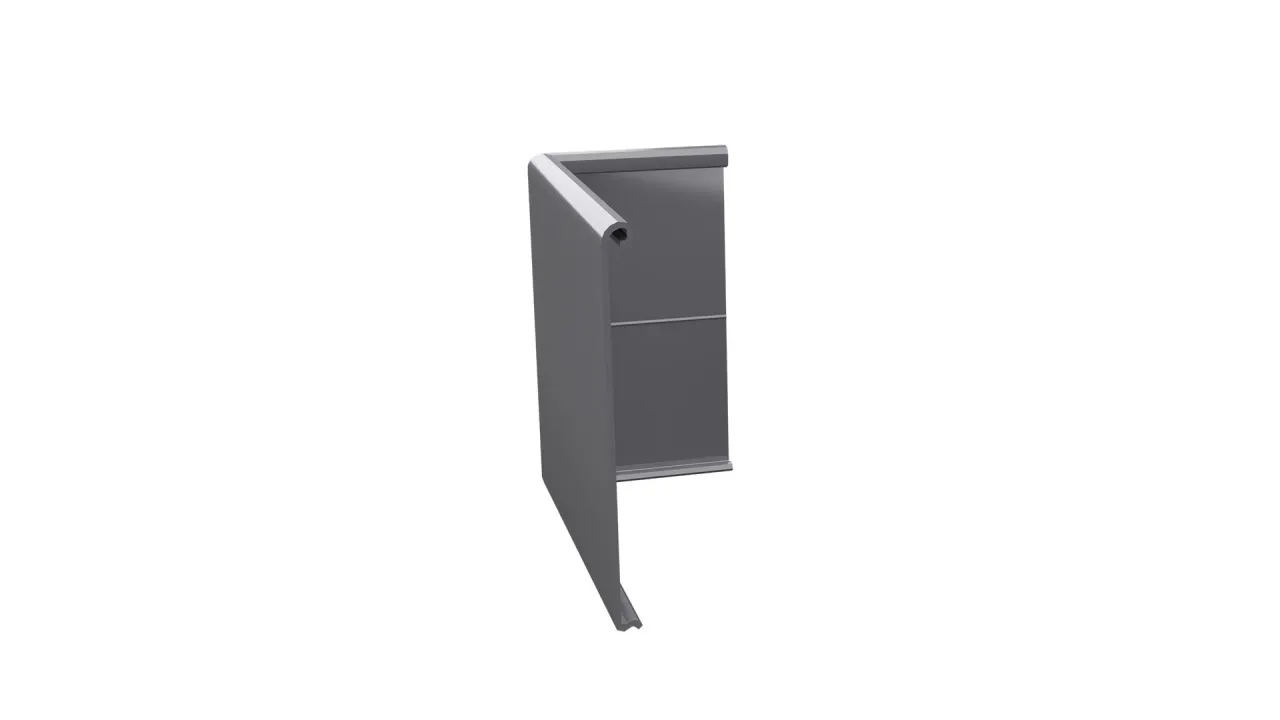 Narożnik łącznikowy W30 Lewy jest elementem systemowego wykonania okapu profilami W30, który służy do wykonywania zakończeń profili okapowych W30 w loggiach.