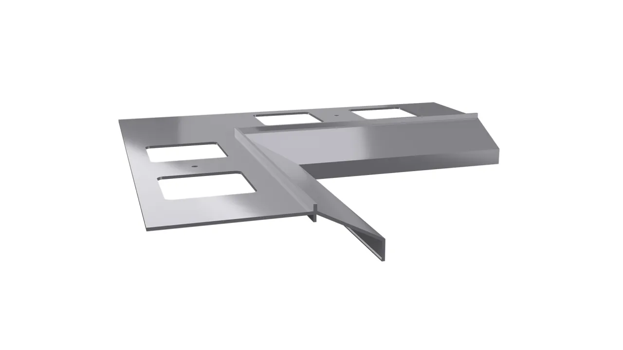 Narożnik wewnętrzny K100 90 jest elementem systemowego wykonania okapu profilami K100, który służy do wykończenia naroży wewnętrznych tarasu i balkonu o kącie 90 stopni.