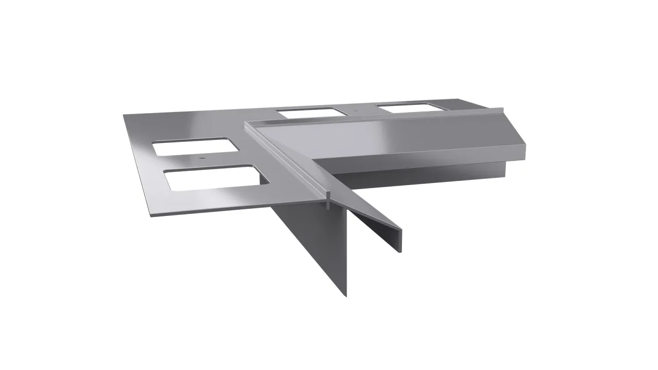 Narożnik wewnętrzny K100R 90 jest elementem systemowego wykonania okapu profilami K100R, który służy do wykończenia naroży wewnętrznych tarasu i balkonu o kącie 90 stopni.