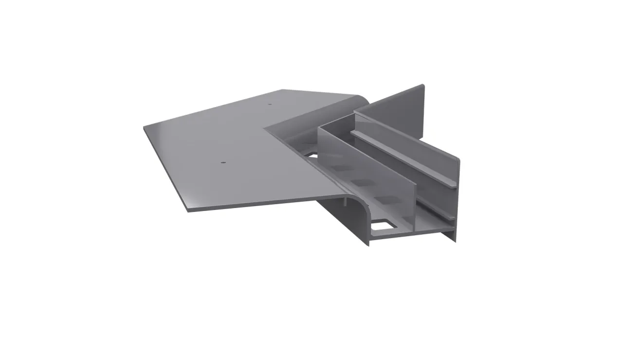 Narożnik wewnętrzny W20 135 jest elementem systemowego wykonania okapu profilami W20, który służy do wykończenia naroży wewnętrznych tarasu i balkonu o kącie 135 stopni.