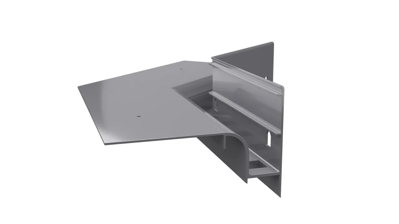Narożnik wewnętrzny W30 135 jest elementem systemowego wykonania okapu profilami W30, który służy do wykończenia naroży wewnętrznych tarasu i balkonu o kącie 135 stopni.