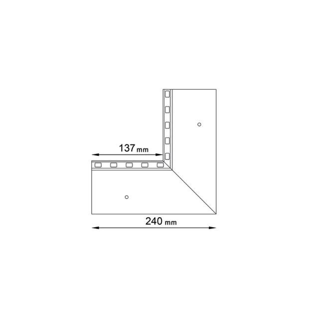 Narożnik wewnętrzny W35 PLUS 90 jest elementem systemowego wykonania okapu profilami W35 PLUS, który służy do wykończenia naroży wewnętrznych tarasu i balkonu o kącie 90 stopni.