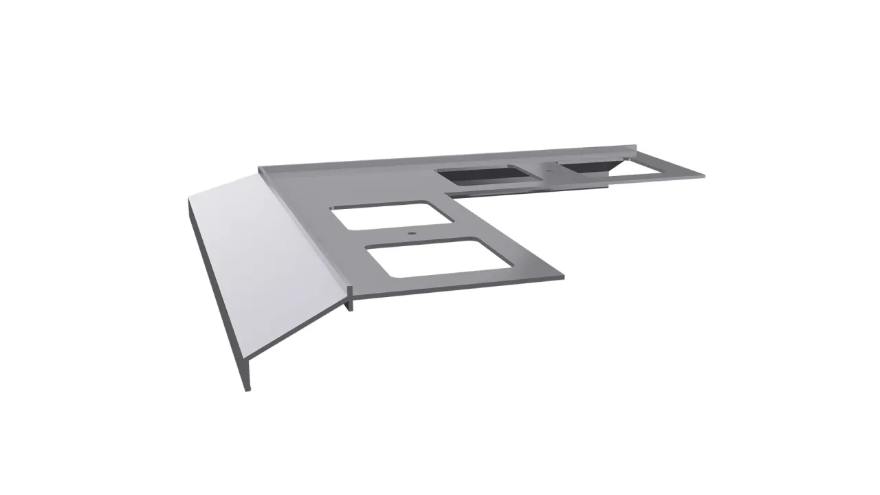Narożnik zewnętrzny K100 90 jest elementem systemowego wykonania okapu profilami K100, który służy do wykończenia naroży zewnętrznych tarasu i balkonu o kącie 90 stopni.