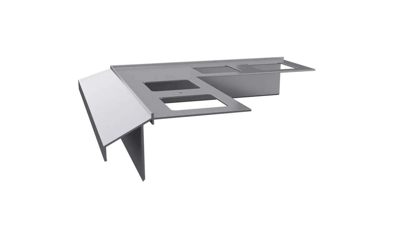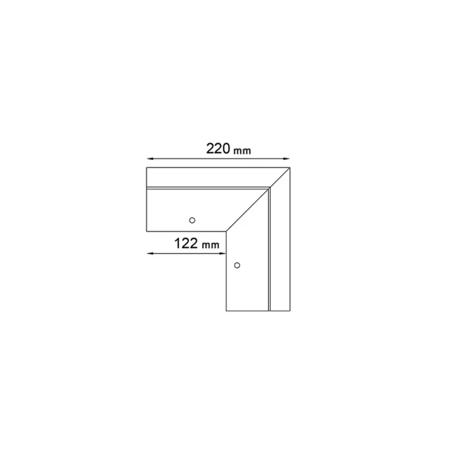 Narożnik zewnętrzny K100R 90 jest elementem systemowego wykonania okapu profilami K100R, który służy do wykończenia naroży zewnętrznych tarasu i balkonu o kącie 90 stopni.
