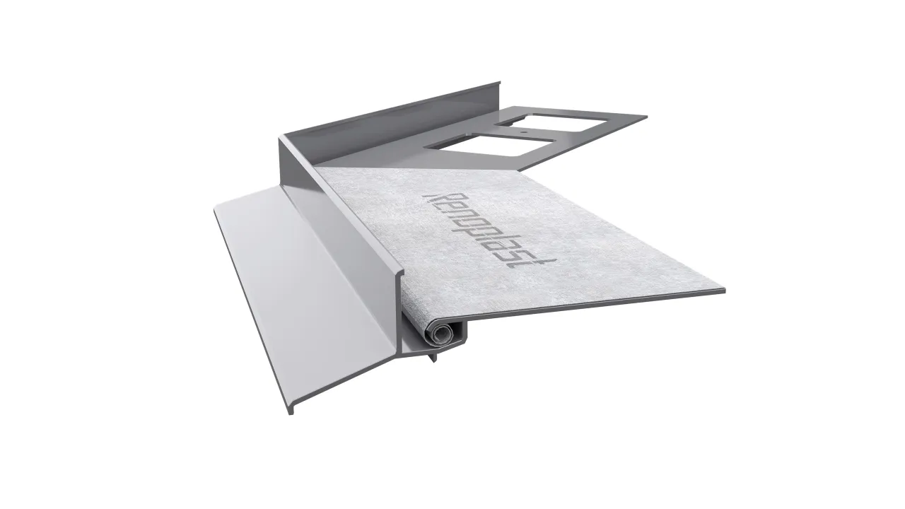 Narożnik zewnętrzny K102 135 jest elementem systemowego wykonania okapu profilami K102, który służy do wykończenia naroży zewnętrznych tarasu i balkonu o kącie 135 stopni. Charakteryzuje się fabrycznie zespoloną z narożnikiem taśmą uszczelniającą CLEVER.