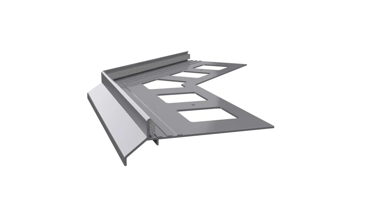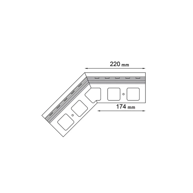 Narożnik zewnętrzny K30 135 jest elementem systemowego wykonania okapu profilami K30, który służy do wykończenia naroży zewnętrznych tarasu i balkonu o kącie 135 stopni.
