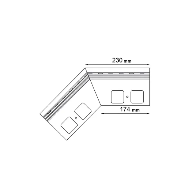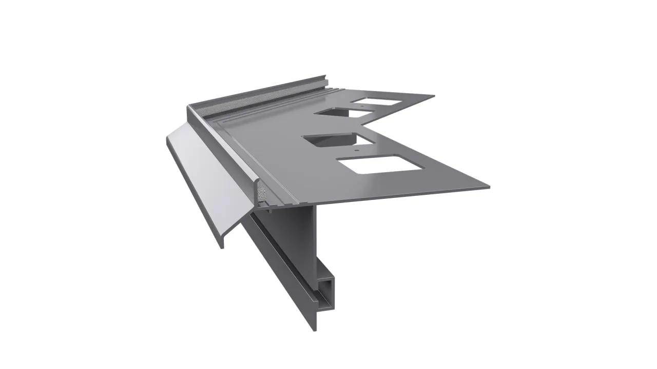 Narożnik zewnętrzny K40 135 jest elementem systemowego wykonania okapu profilami K40, który służy do wykończenia naroży zewnętrznych tarasu i balkonu o kącie 135 stopni.