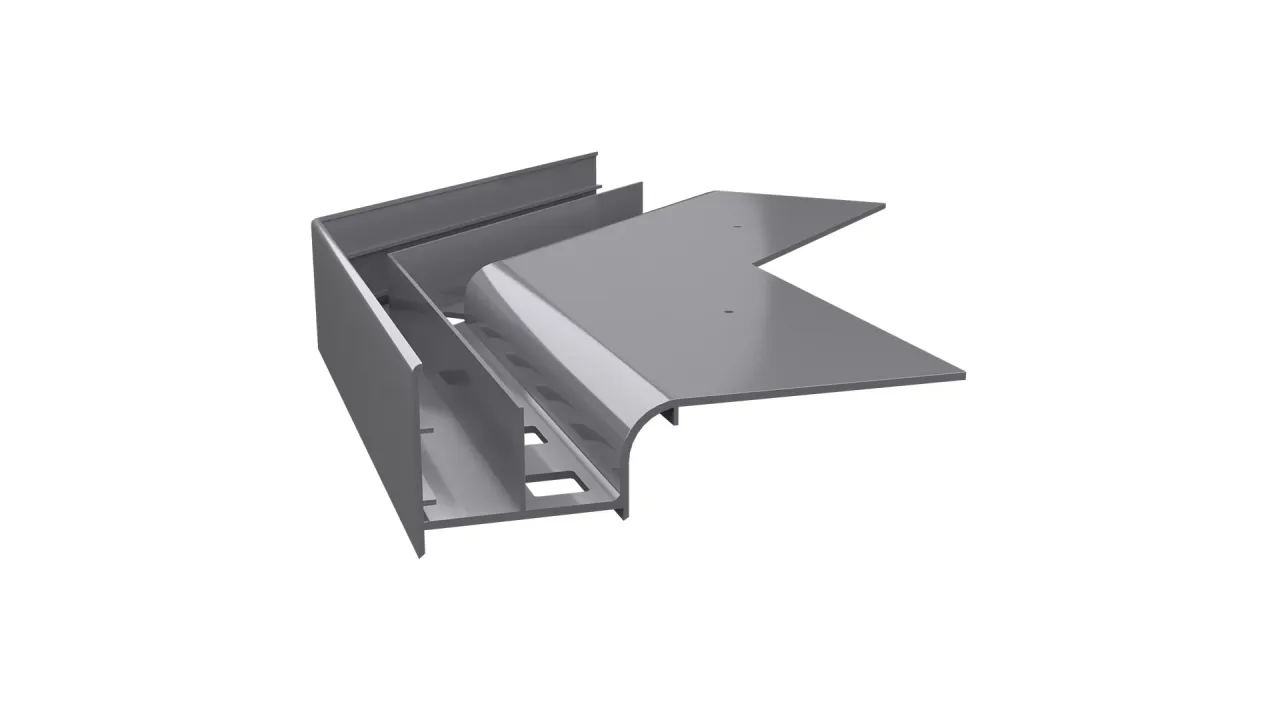 Narożnik zewnętrzny W20 135 jest elementem systemowego wykonania okapu profilami W20, który służy do wykończenia naroży zewnętrznych tarasu i balkonu o kącie 135 stopni.