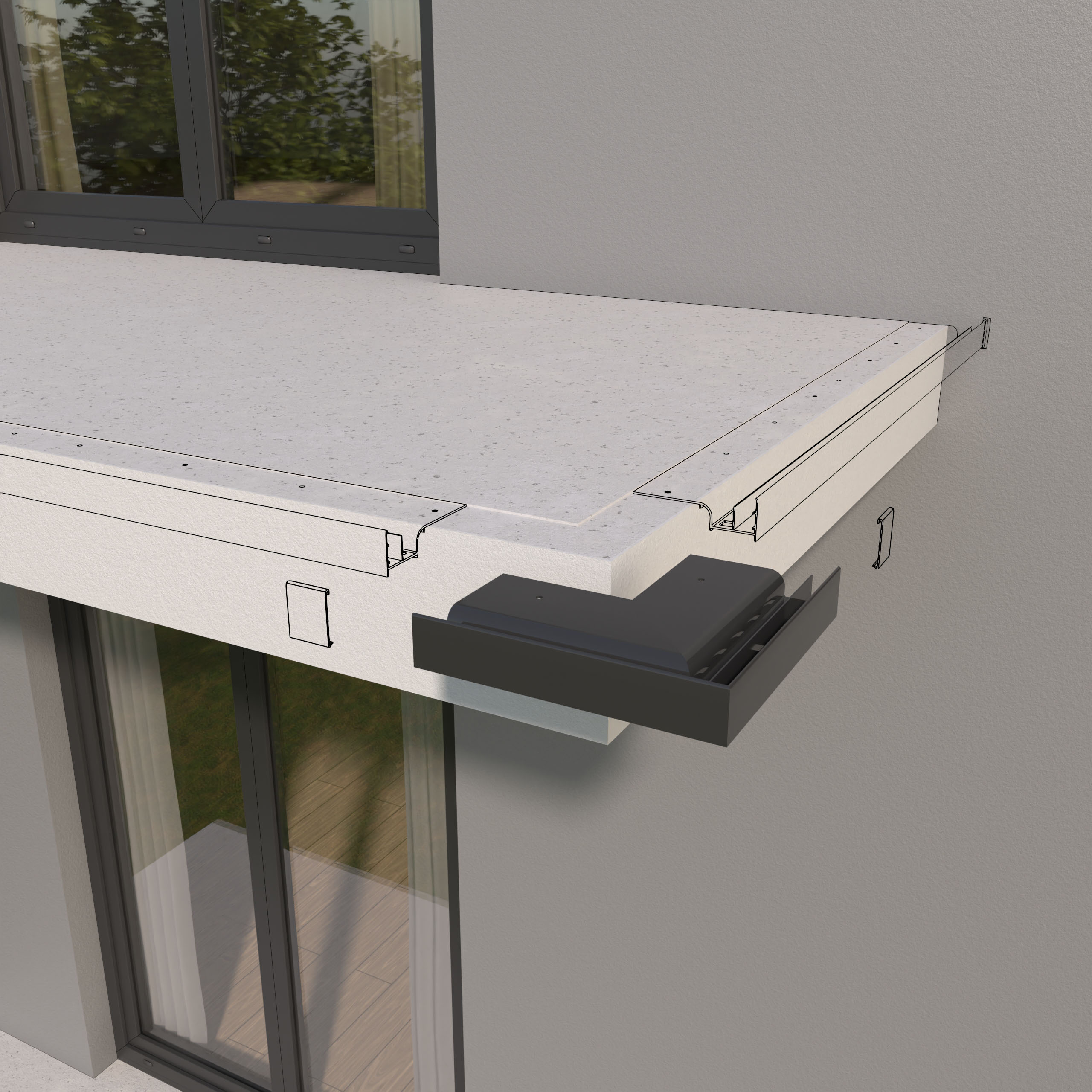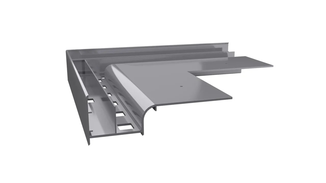 Narożnik zewnętrzny W20 90 jest elementem systemowego wykonania okapu profilami W20, który służy do wykończenia naroży zewnętrznych tarasu i balkonu o kącie 90 stopni.