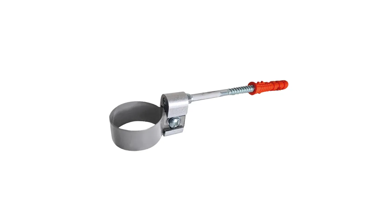 Obejma rury spustowej R50 o średnicy 40 mm i długości kotwy 12 cm jest elementem systemowego odwodnienia rynną R50, który służy do mocowania rury spustowej do ściany budynku.