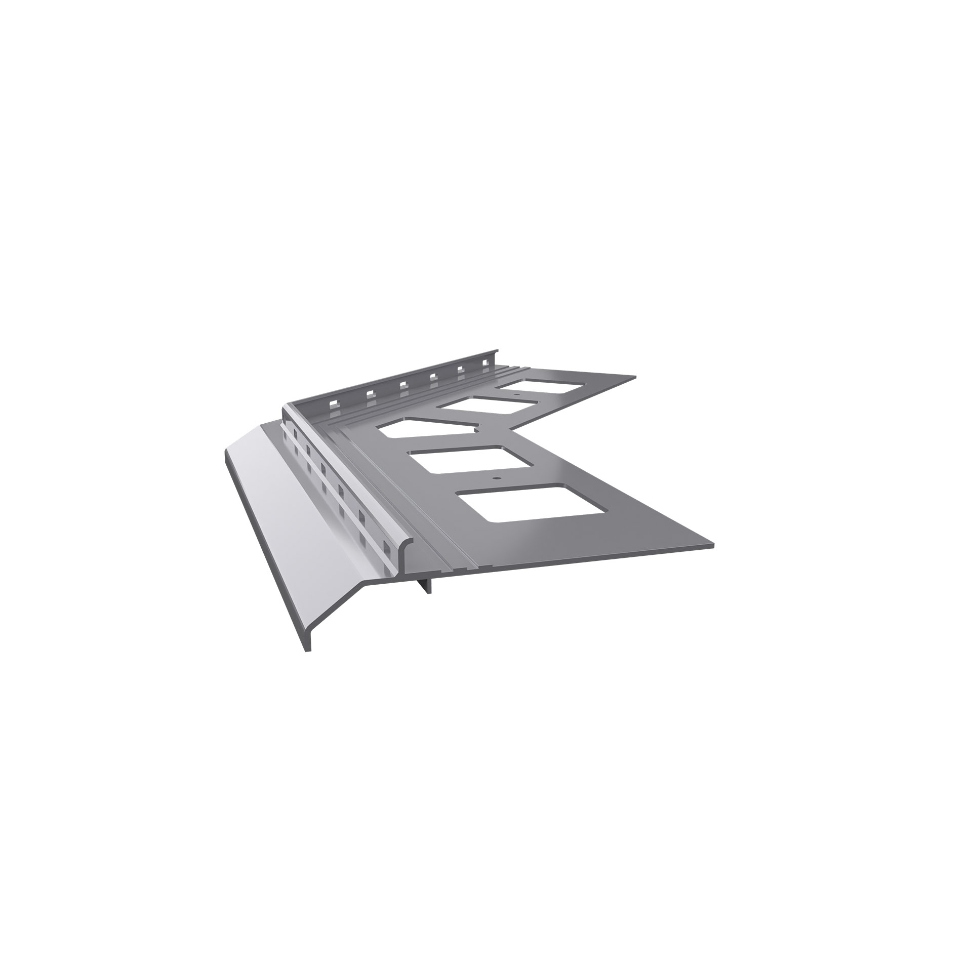 Skuteczne odprowadzanie wody z powierzchni posadzki dzięki innowacyjnej konstrukcji profilu z umieszczonymi od czoła profilu otworami drenażowymi.