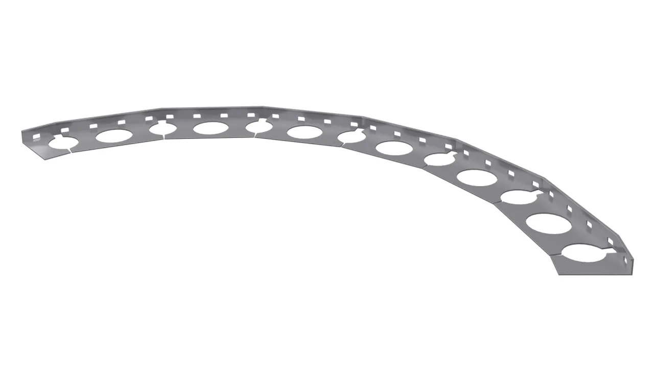 Profil schodowy SZ10 łukowy nacinany służy do wykończenia i wzmocnienia naroży stopnic, gdy schody wykonane są w łuku o promieniu nie mniejszym niż 100 cm.