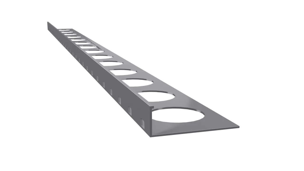 Profil schodowy SZ15 służy do wykończenia i wzmocnienia krawędzi schodów z okładziną wykonaną w technologii kamiennego dywanu na styku stopnicy i podstopnicy przy grubości okładziny 15 mm.