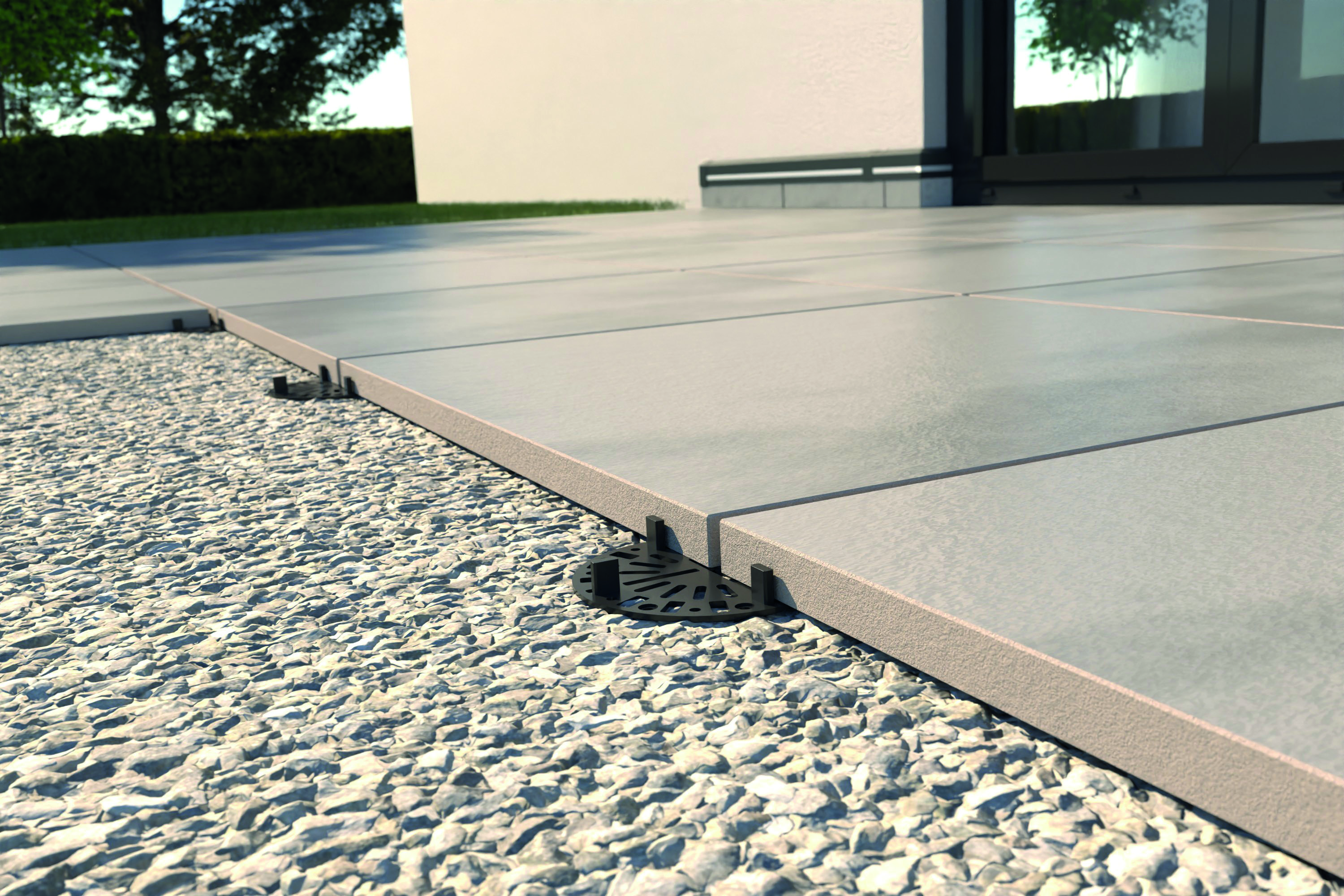 Wsporniki tarasowe RENOSLIM stosowane są do podparcia płyt tarasowych na naziemnych tarasach i ciągach pieszych. Podkładem pod posadzkę wentylowaną jest zagęszczone kruszywo łamane. Zastosowanie wsporników tarasowych RENOSLIM pozwala na równe układanie płyt tarasowych z zachowaniem prostej szczeliny pomiędzy płytami o szerokości 4 mm