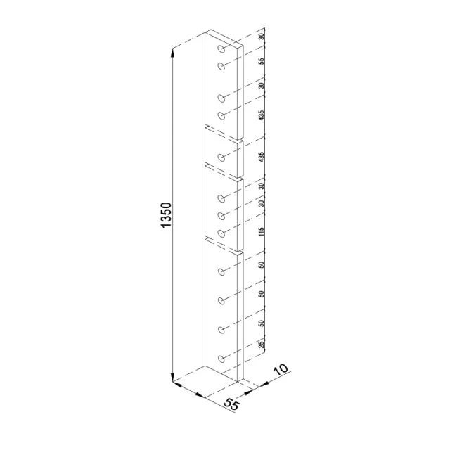 Słupek balustrady BS o długości całkowitej 1350 mm jest elementem systemu balustrad słupkowych, który składa się z dwóch aluminiowych płaskowników i stanowi główną konstrukcję balustrady.