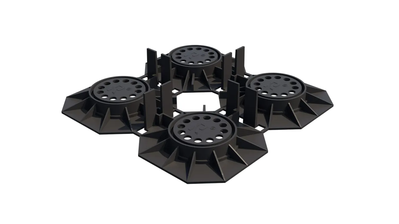 Wspornik tarasowy SMART fuga 2 mm do wykonywania tarasów i balkonów w technologii wentylowanej, umożliwia układanie płyt posadzkowych o wysokości 12 mm ze szczeliną pomiędzy płytami o szerokości 2 mm.